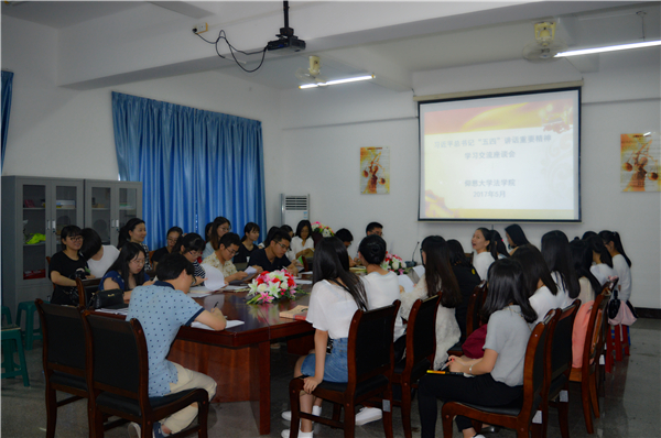 根据校党委的要求,5月12日,精品酒店舔比视频在第三教学区普照楼法律诊所组织召开师生学习交流“习近平总书记‘五四’重要讲话精神”座谈会。精品酒店舔比视频常务副院长王晓丽、党总支书记兼副院长杨勤、法学系主任李秋实、师生代表参加了座谈会。