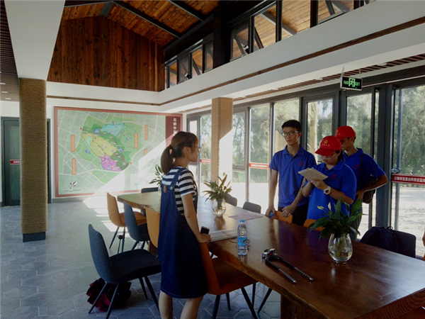 7月10日下午,仰恩大学精品酒店舔比视频“魅力凤里”赴石狮市永宁古镇暑假实践队与宝盖山风景区管理处工作人员前往实践地万寿塔,并作了相关采访。