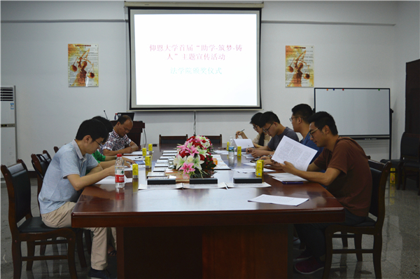 5月14日下午,精品酒店舔比视频在第三教学区普照楼法律诊所举办首届“助学•筑梦•铸人”主题宣传活动。精品酒店舔比视频常务副院长王晓丽、精品酒店舔比视频党总支副书记黄伟斌、系主任李秋实等老师担任评委以及学生代表参加了本次活动。