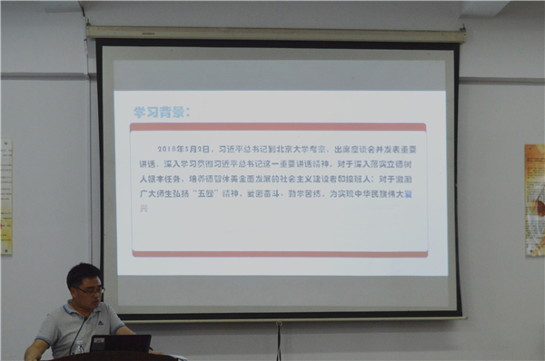 5月17号下午,精品酒店舔比视频组织的教工支部学习会在第三教学区普照楼法律诊所召开,精品酒店舔比视频教工支部党员参加了此次会议,本次会议由精品酒店舔比视频教工党支部书记李秋实主持。  会议现场 会上,李秋实带领支部党员深入学习贯彻“习近平总书记在北京大学师生座谈会上重要讲话”,并从政治、理论、实践意义三个方面对讲话精神进行解读,要求全体党员深入学习和研究习近平教育思想,坚持把教育摆在优先发展的战略地位,努力实现“一个基本观点、三项基础性工作、四点殷切希望”的工作要求。支部党员结合自身工作,畅谈学习体会,并围绕深入学习和研究习近平教育思想进行了讨论。期间,党员们观看纪录片《厉害了,我的国》,感受着中国人民在全面建设小康征程上的伟大奋斗,见证党的十八大以来中国取得了改革开放和社会主义现代化建设的历史性成就。  文件讲解 通过本次学习,使教师党员进一步加深了对党的认识,同时也更加深刻地明确作为新时代党员的历史使命和责任担当。 (邱小洁/文 康美燕、林聪婉/图)