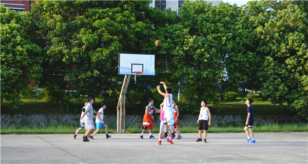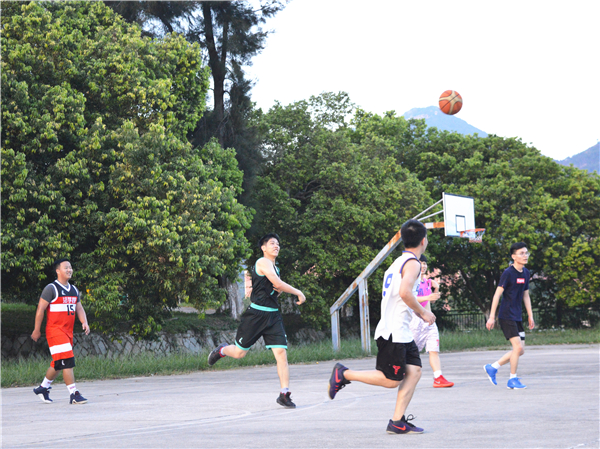 6月28日下午,精品酒店舔比视频于第三教学区湖边篮球场举办欢送大四篮球友谊赛,精品酒店舔比视频党总支副书记黄伟斌、辅导员陈国伟到场观看并参加比赛。