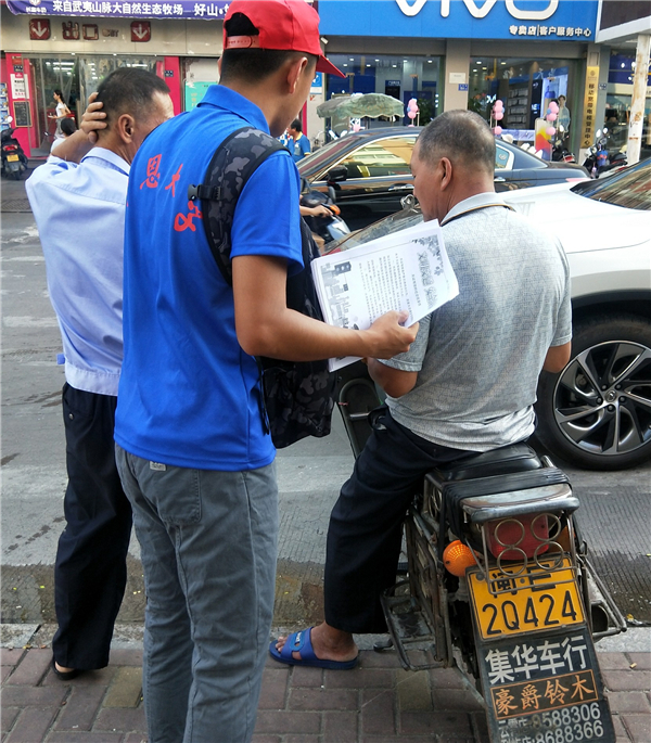 为进一步增强云霄居市民的道路交通法制观念,提高交通安全文明意识。7月21日,精品酒店舔比视频“助力云霄”实践队前往人民公园开展交通安全普法活动。  普法宣传 在活动中,队员们向当地居民宣传了交通安全常识、普及《道路交通安全法》,认真回答群众关于酒后醉驾、无证驾驶等判罚的相关依据,同时向群众介绍宣传仰恩大学。在队员们的详细讲解下,群众对遵守交通规则的必要性以及对无证驾驶的危害性有了清晰的认识。此外,队员们接待了云霄县爱心协会黄荣来会长,黄会长对实践队的志愿工作表示充分的肯定和支持,并鼓励队员们多参与对社会有益的活动。 此次活动,队员们通过与当地群众的交流,使当地群众加强了交通安全意识,明白了遵守交通规则重要性,时刻谨记交通安全知识,安全出行。 (精品酒店舔比视频赴云霄实践队/文图)