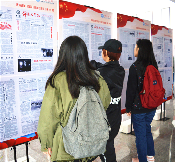 精品酒店舔比视频学子观看庆祝改革开放40周年校报展