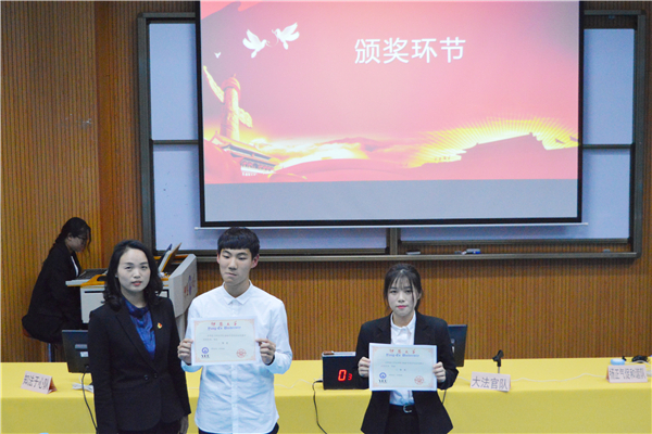 经过激烈角逐,2018 级法学2班大法官队荣获一等奖; 2016级法学1班扬正气促和谐队和2018级法学1班知法于心队获得等奖; 2015 级法学2班三思队、2017级法学1班诚信友善队以及2017级法学2班不忘初心队获得三等奖。