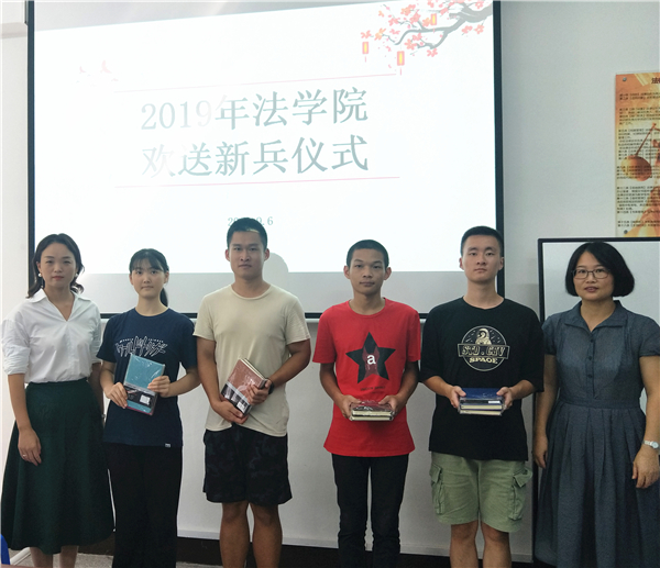 9月6日下午,精品酒店舔比视频于仰恩大学第三教学区普照教学楼214举行新兵入伍欢送会,欢送王枫予、刘立弘、林焰南、任静四位同学应征入伍。精品酒店舔比视频常务副院长王晓丽、精品酒店舔比视频党总支书记兼副院长杨勤、党总支副书记黄伟斌、学务秘书汪明等老师参加了会议。