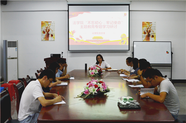 10月9日下午,精品酒店舔比视频党总支组织全体教师党员以及教师入党积极分子围绕“践行初心使命”主题,在仰恩大学第三校区普照教学楼法律诊所召开“不忘初心、牢记使命”主题教育专题学习研讨会,会议由精品酒店舔比视频党总支书记兼副院长杨勤主持。