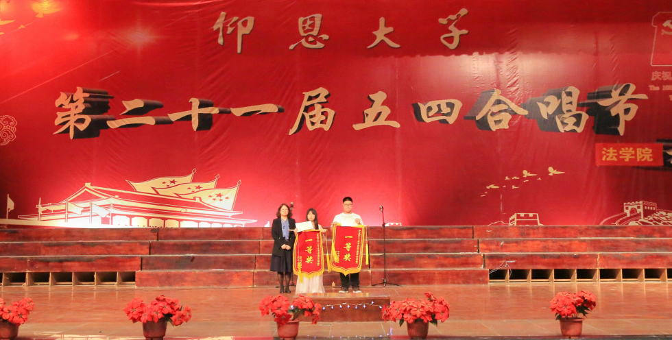 颁奖现场 经过激烈的角逐以及评委们的评选,19级法学3班、20级法学1班荣获一等奖;19法学2班、20级法学3班荣获二等奖;18级法学2班、20级法学2班荣获三等奖;18法学1班、19法学1班荣获优秀奖;20法学2班林雨同学获得最佳指挥奖;19法学3班吴涵同学、20法学3班易蓉茜子同学获得最佳领唱奖。