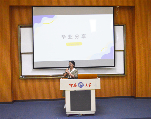 最后,由杨勤老师作总结发言,她对毕业生代表们表达了衷心的祝贺,并希望学院全体学生以他们为榜样,矢志奋斗,砥砺前行。此外,她还结合自身的学习成长、教师生涯等经历,鼓励学院学生要努力学习,积极参加学校、学院的学生社团组织活动,珍惜自身学生干部的工作履历,善于全方位、多角度、多层次提升自身的综合素养,为今后的人生择业就业、成长成才打下坚实的基础。