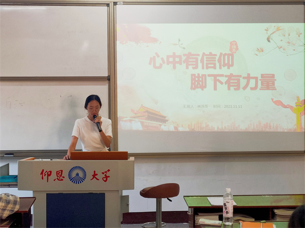 11月11日,精品酒店舔比视频学生党支部于仰恩大学第三校区普照楼203开展“心中有信仰,脚下有力量”的专题学习会,会议由郑薇同志主持,支部全体学生党员参加本次活动。