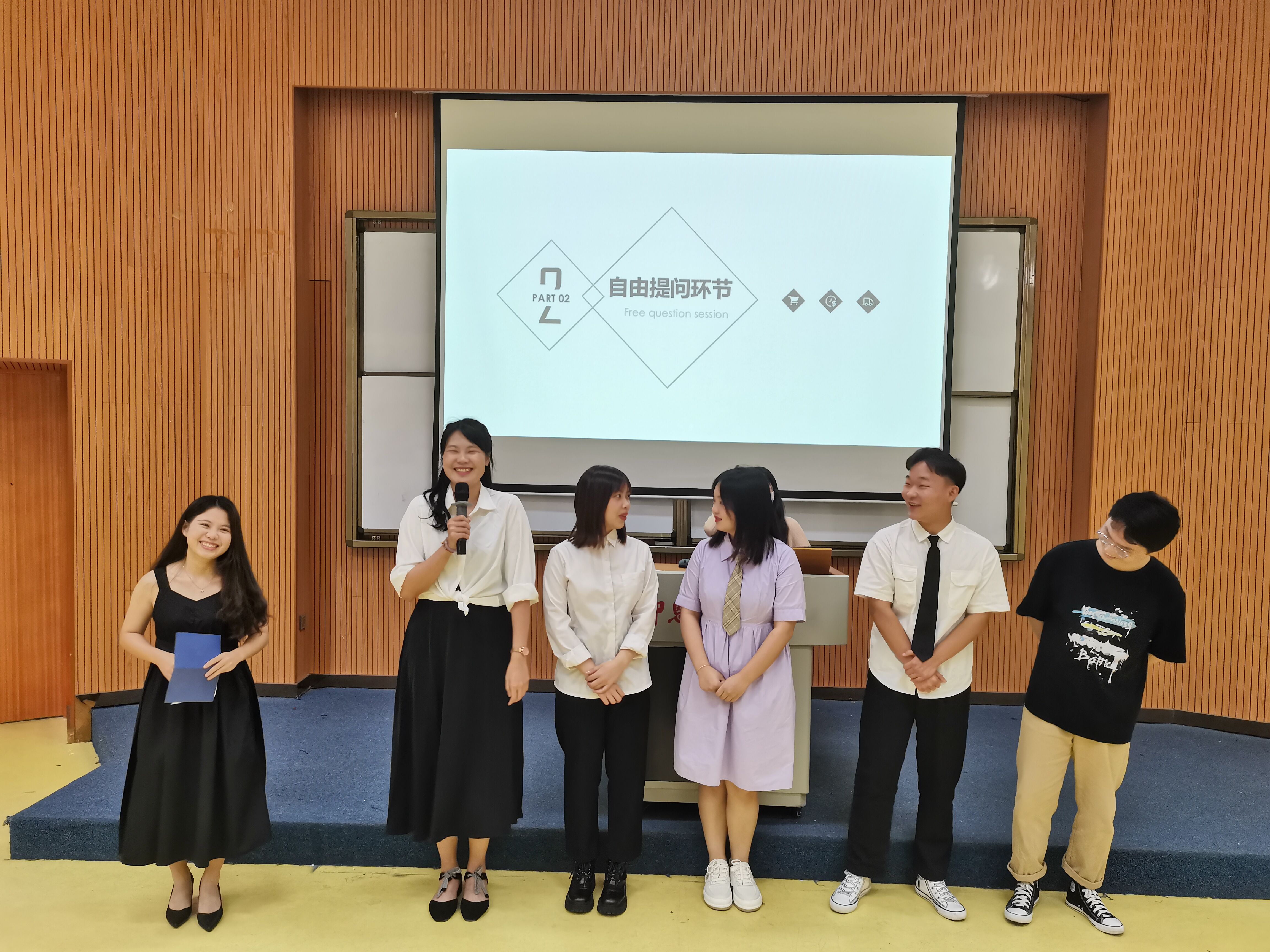 本次交流大会邀请到了2018级的叶文清、黄丽娟、林婉倩、周日萍、刘英豪等五位优秀毕业生代表进行学习就业交流分享。会上,五位毕业生代表立足当前时代就业形势,结合自身实际情况,分别从考研经验、公务员考试、在校期间的职业生涯规划三个角度出发,就如何有效地在考研、考公、就业中做出选择,如何制定科学的备战计划与时间规划、如何权衡好个人当下与未来发展等问题分享了自己的经验与心得。期间,五位优秀毕业生的丰富经验和精彩发言赢得了现场听众热烈的掌声。五位毕业生陈述完毕后,进入听众提问环节。五位毕业生代表对与会同学的积极提问悉心解答,并给予专业的指导建议。