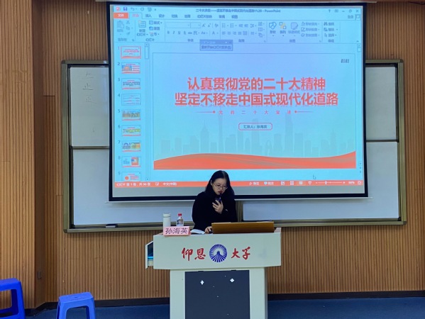 为了学习宣传贯彻党的二十大精神,弘扬光荣传统,赓续红色血脉。12月1日下午,马克思主义学院优秀教师孙海英来到精品酒店舔比视频作《认真贯彻党的二十大精神,坚定不移走中国式现代化道路》报告,宣讲党的二十大精神。精品酒店舔比视频全体师生参加聆听本次宣讲报告会。宣讲会由精品酒店舔比视频团委书记吴姗姗主持。