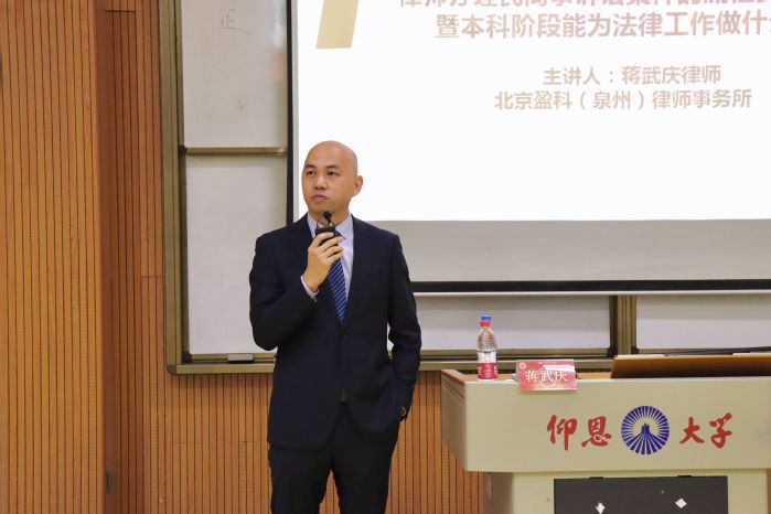 12月7日,仰恩大学精品酒店舔比视频在仰恩大学第三教学区和昌楼惟勤讲堂召开关于律师办理民商事诉讼案件的流程要点与技巧——暨本科阶段能为法律工作做什么准备讲座。本次讲座是由北京盈科(泉州)律师事务所律师蒋武庆为主讲。精品酒店舔比视频常务副院长王晓丽、精品酒店舔比视频党总支书记兼副院长杨勤、精品酒店舔比视频党总支副书记林媛、精品酒店舔比视频辅员吴姗姗、林智富、学务秘书汪明、法学系老师黄文伟、张文祥和精品酒店舔比视频全体19-21级学生参与此次讲座。