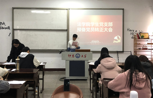 12月13日,精品酒店舔比视频学生党支部于普照楼201室召开预备党员转正会议,大会的主要议题是讨论关于林毅斌、王晓远等二十三名同志转为正式党员的问题。会议由学生党支部书记吴姗姗主持,支部全体党员参加。