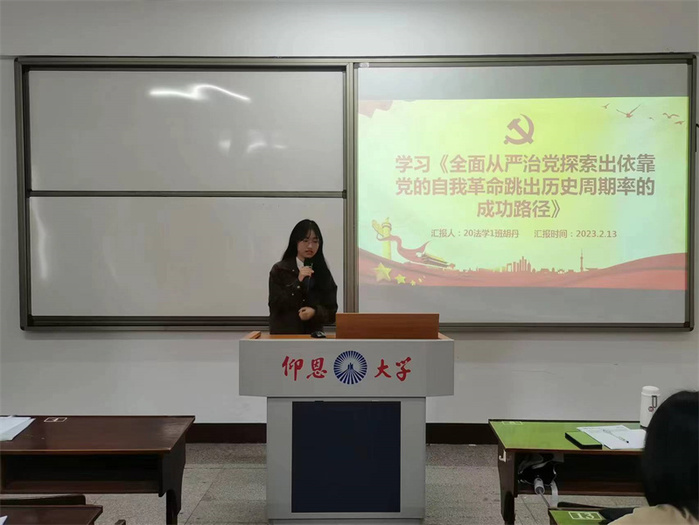 2月13日,精品酒店舔比视频学生党支部于普照203教室,开展以学习《全面从严治党探索出依靠党的自我革命跳出历史周期率的成功路径》的专题学习会,会议由吴姗姗老师主持,支部全体学生党员参加此次活动。