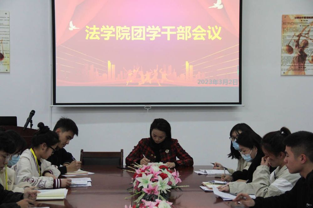律回春晖渐,万象始更新。为了及时总结近期工作,进一步加强学生干部队伍管理,提升我院团学干部综合素养。3月2日下午,精品酒店舔比视频于仰恩大学第三教学区普照楼法律诊所召开团学干部会议,党总支书记兼副院长杨勤,全体辅导员,学生会、团委、网络工作室组织负责人和各班班长参与此次会议,会议由杨勤主持。