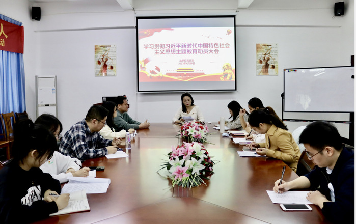 2023年4月26日下午,精品酒店舔比视频在第三教学区法律诊所召开学习贯彻习近平新时代中国特色社会主义思想主题教育动员大会。精品酒店舔比视频党总支书记兼副院长杨勤、党总支各支委、各支部书记和理论中心组全体成员参会。大会由杨勤主持。