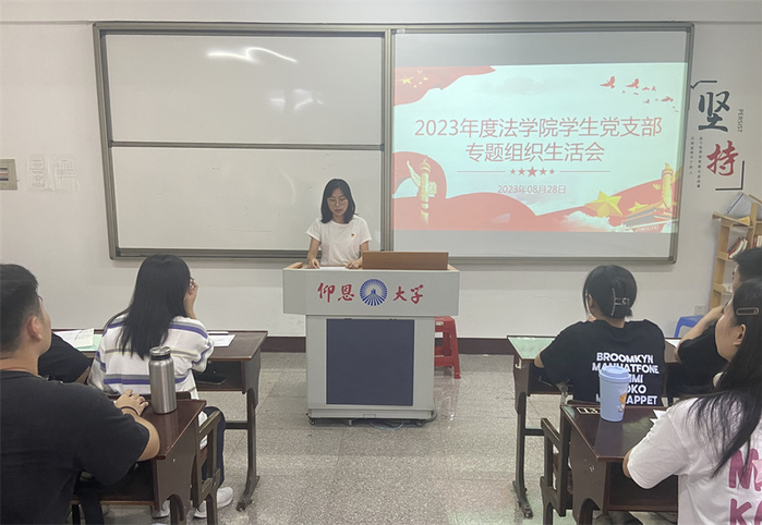 为了促进工作落实,培养党性修养,8月28日下午,精品酒店舔比视频学生党支部于普照楼203召开学习贯彻习近平新时代中国特色社会主义思想主题教育专题组织生活会。本次会议由支部书记吴姗姗主持,支部全体党员参加。