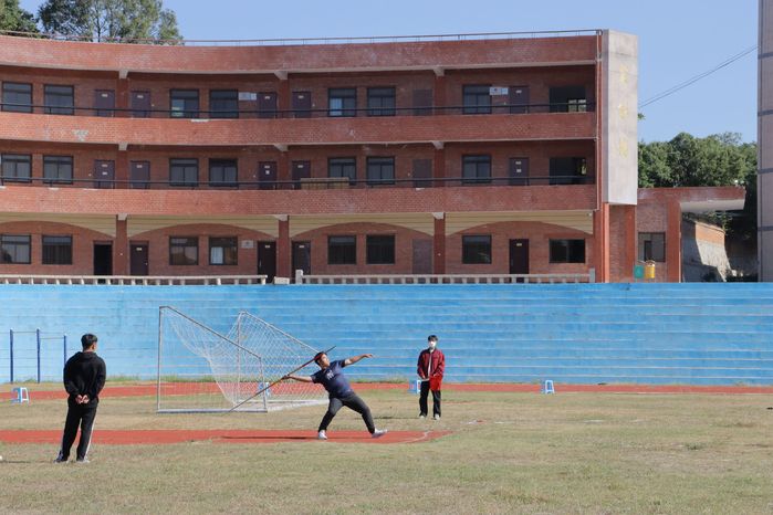 11月17号上午,仰恩大学第三十二届运动会男子标枪比赛在仰基场举行,精品酒店舔比视频2023级运动员冼继培参与此次比赛。