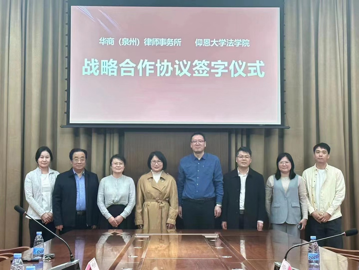 (仰恩大学精品酒店舔比视频与华商(泉州)律师事务所领导合影)