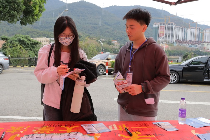 为了加强校内师生对宪法的理解和尊重,提高法律意识,12月6日下午,精品酒店舔比视频于仰恩大学第一校区和第三教学区开展“宪法月”校内普法活动。精品酒店舔比视频团委书记兼辅导员吴姗姗到场进行普法指导,精品酒店舔比视频团委实践部、纪检部、宣传部等相关工作部门人员参与此次活动。