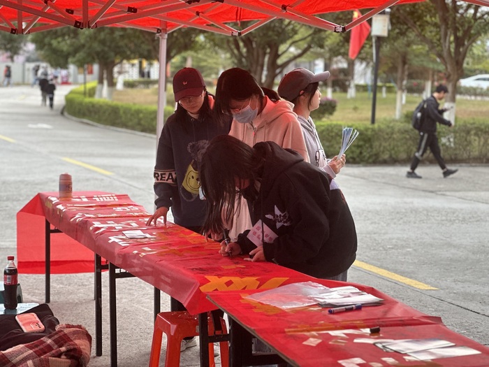 本次活动紧扣“普法守法讲文明,学法用法促和谐”的主题展开。活动筹备阶段,在吴姗姗的指导下,同学们共同制作了一系列有关宪法知识的宣传海报和手册,供师生随时查阅。活动中,气氛十分热烈,吸引了大批同学前来围观学习。工作人员通过发放普法宣传册、现场答疑、横幅签名等方式,向校内师生全面宣传普及《中华人民共和国宪法》,营造了浓郁的法治宣传氛围。
