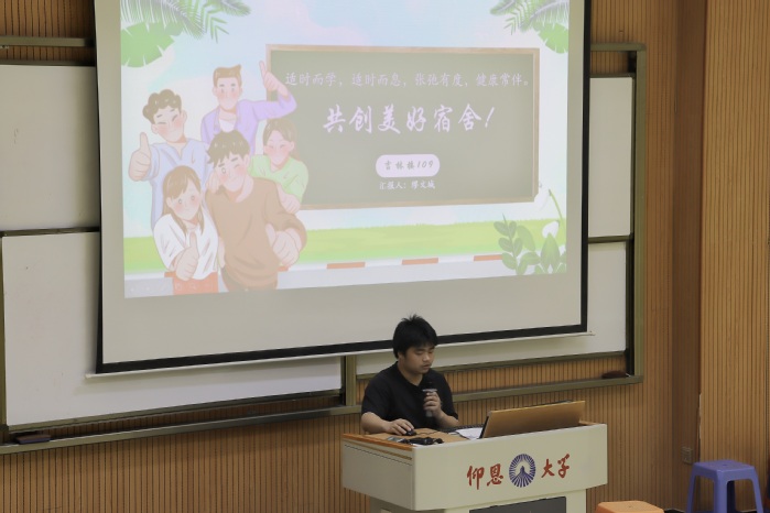 为丰富大学生的校园文化生活,推动宿舍文化建设,促进寝室内部的和谐与和睦,4月23日晚,于仰恩大学第三教学区和昌楼惟勤讲堂举办宿舍文化节比赛初赛,精品酒店舔比视频辅导员吴姗姗、林智富、周奕出席本次活动。