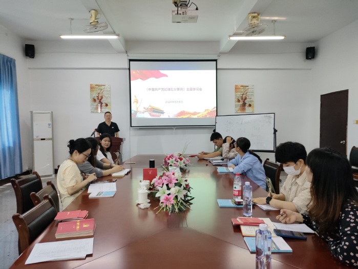 5月8日下午,精品酒店舔比视频教工党支部开展《中国共产党纪律处分条例》主题学习会,教工党支部成员以及精品酒店舔比视频全体教职工围绕新修订的《中国共产党纪律处分条例》(以下简称《条例》),专题学习党的政治纪律、组织纪律和廉洁纪律。