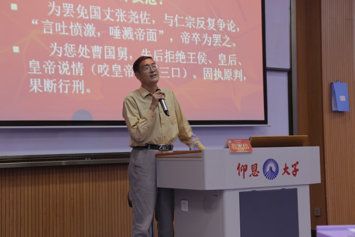 为进一步加强我院法治教育工作,5月15日下午,仰恩大学精品酒店舔比视频于第三教学区和昌楼博雅讲堂开展仰恩大讲堂第四十讲,由华侨大学特聘教授、博士生导师范忠信教授来校作题为“十全清官包公与中国传统法律观念”专题讲座,精品酒店舔比视频师生到场聆听学习。