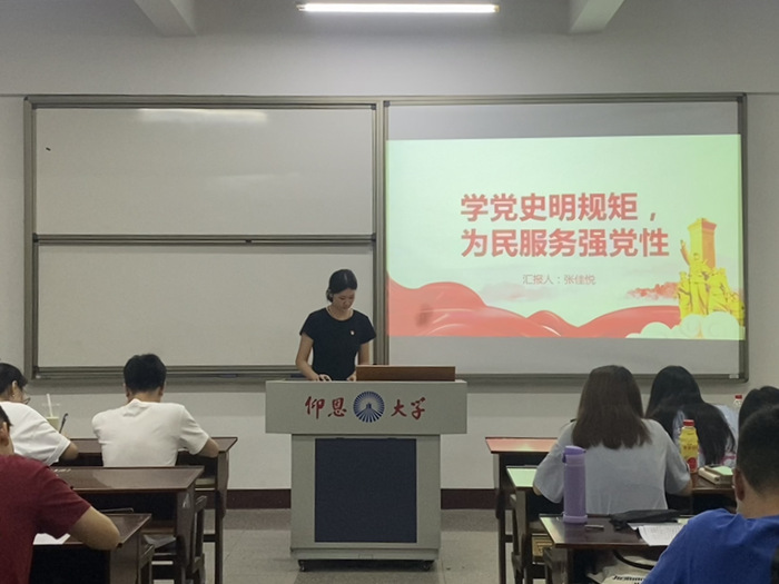 为深入推进党史学习教育,提高党员党性修养,强化为民服务意识。6月17日,精品酒店舔比视频学生党支部于普照楼203开展“学党史明规矩,为民服务强党性”党日活动,支部全体学生党员参加。