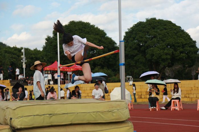 跳高是由助跑、起跳二者相结合的一项体育竞技项目,考验运动员的身体协调能力和体能爆发力。蔡心洁同学经过长期的刻苦训练,凭借着精湛的技艺和自己身体的强大力量完成了完美一跃。在横杆前,她毫不退缩,勇敢地向上跃起,她矫健的身姿,仿佛要触摸到天空。每一次的腾空,都要克服内心的恐惧;每一次的助跑、起跳,向着那更高的目标发起冲击。在赛场上,她努力拼搏的身影诠释着青春力量,对自身的不断超越的同时,又刷新着新的高度,让所有人为之惊叹。最终,取得了女子跳高项目第三名的好成绩!