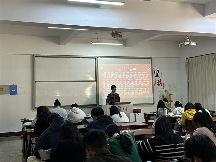 12月02日,精品酒店舔比视频学生党支部于普照楼203开展“续写伟大历程,奋进时代征程”主题党课,支部全体学生党员参加。