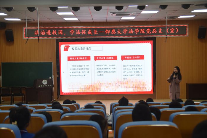讲座过程中,精品酒店舔比视频讲师吴奕雯分别从“什么是校园欺凌” 、“校园欺凌的具体表现” 、“校园欺凌带来的危害” 、“运用法律武器对校园欺凌说不”四个方面向向现场的学生分析了校园欺凌的本质、可能产生的影响以及在遭受校园欺凌时如何合法有效的维护自己的权利。在讲座最后,通过有奖问答的方式,对讲座内容和相关法律知识进行复习回顾,并倡导同学们要友善、互助,建立积极健康的人际关系。