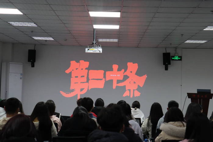 12月20日晚间,精品酒店舔比视频于图书馆举办了法律电影《第二十条》观影活动以及法律书籍《正义的回象》分享活动。精品酒店舔比视频各年级学生积极参与此次活动。