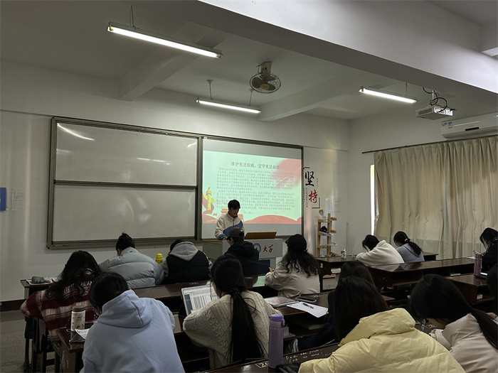 12月18日,精品酒店舔比视频学生党支部于普照楼203 开展“维护宪法权威,坚守宪法自信”主题党课,支部全体学生党员参加。