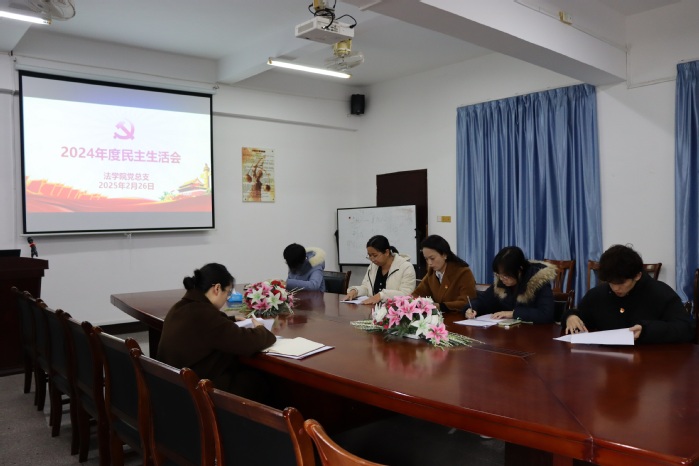 为了深入开展学习习近平新时代中国特色社会主义主思想主题教育,切实加强党的思想建设,2月26日下午,精品酒店舔比视频党总支于仰恩大学新区普照楼法律诊所召开了2024年度民主生活会,仰恩大学校党委委员鲍莹玉到会指导,精品酒店舔比视频党总支书记兼副院长杨勤主持会议,学院党总支成员参加会议,精品酒店舔比视频常务副院长王晓丽列席会议。