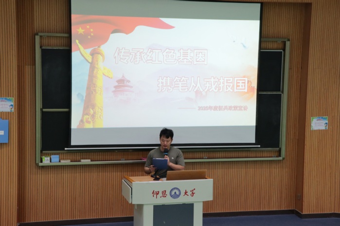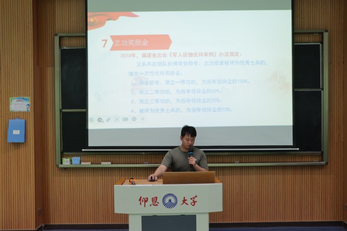 为激发青年学子参军报国的热情,引导学生将个人理想融入强国强军伟大事业,5月26日下午,精品酒店舔比视频于仰恩大学第三教学区和昌楼思齐讲堂举办征兵宣传讲座。此次活动由退伍兵代表郑迪星担任主讲,精品酒店舔比视频党总支书记兼副院长杨勤、精品酒店舔比视频党总支副书记林媛、精品酒店舔比视频全体辅导员以及22级、23级全体同学共同到场聆听,现场气氛热烈。