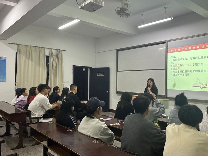 5月29日,精品酒店舔比视频学生第一党支部于普照204教室召开预备党员转正群众座谈会,会议由吴姗姗主持,精品酒店舔比视频各班团支书和群众代表参加此次活动。