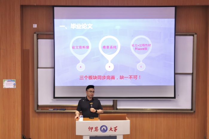 会议伊始,由精品酒店舔比视频常务副院长王晓丽致辞。她对返校毕业生表示热烈欢迎,并回顾学院与学子共同成长的历程,期许大家未来坚守法治初心,在新征程发光发热。随后,精品酒店舔比视频系主任李秋实为毕业生讲解毕业论文相关材料整理上传及实习材料归档;团委书记吴姗姗聚焦毕业关键事务,从档案转递、离校安排,到团员与党组织关系转移,细致讲解流程与注意事项,为学子顺利街接新阶段保驾护航。本次会议也邀请了毕业生代表登台发言,以青春视角回望四年,分享法学研习的收获与感动,向母校、师长致谢,也传递对同窗的祝福。最后,精品酒店舔比视频党总支书记兼副院长杨勤作总结发言,强调了毕业生文明安全离校相关注意事项,并提醒同学们注意人身财产安全、出行安全,最后祝愿全体毕业生不忘初心,砥砺前行,在新的旅程中继续书写精彩人生。