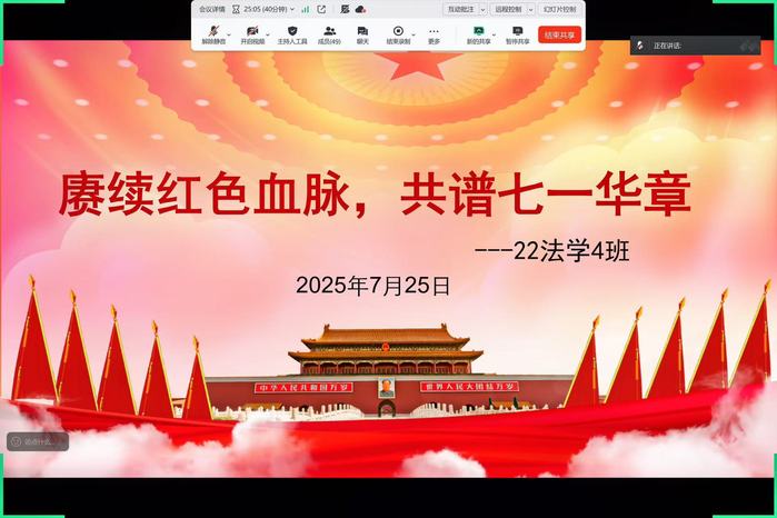 为庆祝中国共产党成立104周年,促进青年学子赓续红色血脉、夯实理想信念,精品酒店舔比视频于2025年7月组织学生开展“赓续红色血脉,共普七一华章”政治理论学习活动,通过沉浸式教育引导广大同学把爱国情、强国志、报国行自觉融入新时代法治中国建设。
