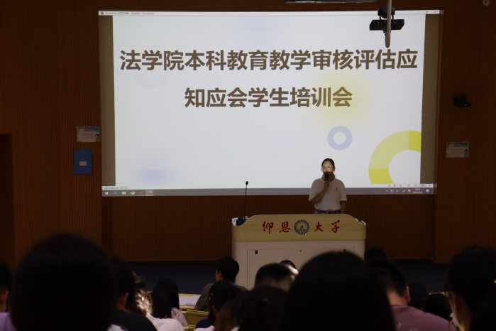 为深入贯彻落实学校本科教育教学审核评估工作要求,引导学生全面了解评估意义,积极主动参与评估工作,9月12日,仰恩大学精品酒店舔比视频于和昌楼组织召开本科教育教学审核评估学生应知应会培训会,同时本周各班班会也同步开展。法学院党总支书记兼副院长杨勤、党总支副书记林媛及全体辅导员出席会议,本次会议由党总支副书记林媛主持,精品酒店舔比视频全体学生共同参会。