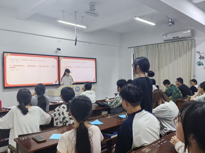 9月29日,精品酒店舔比视频学生第二党支部于普照楼203教室开展“家国同庆吟诗意,红旗漫卷颂团圆”党日活动,支部全体学生党员参加。